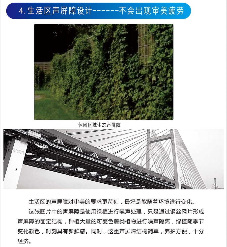 為減輕行車噪聲對附近居民的影響而設置在鐵路和公路側旁的墻式構造物。隔音墻也稱為聲屏障。在聲源和接收者之間插入一個設施,使聲波傳播有一個顯著的附加衰減,從而減弱接收者所在的一定區域內的噪聲影響,這樣的設施就稱為聲屏障。